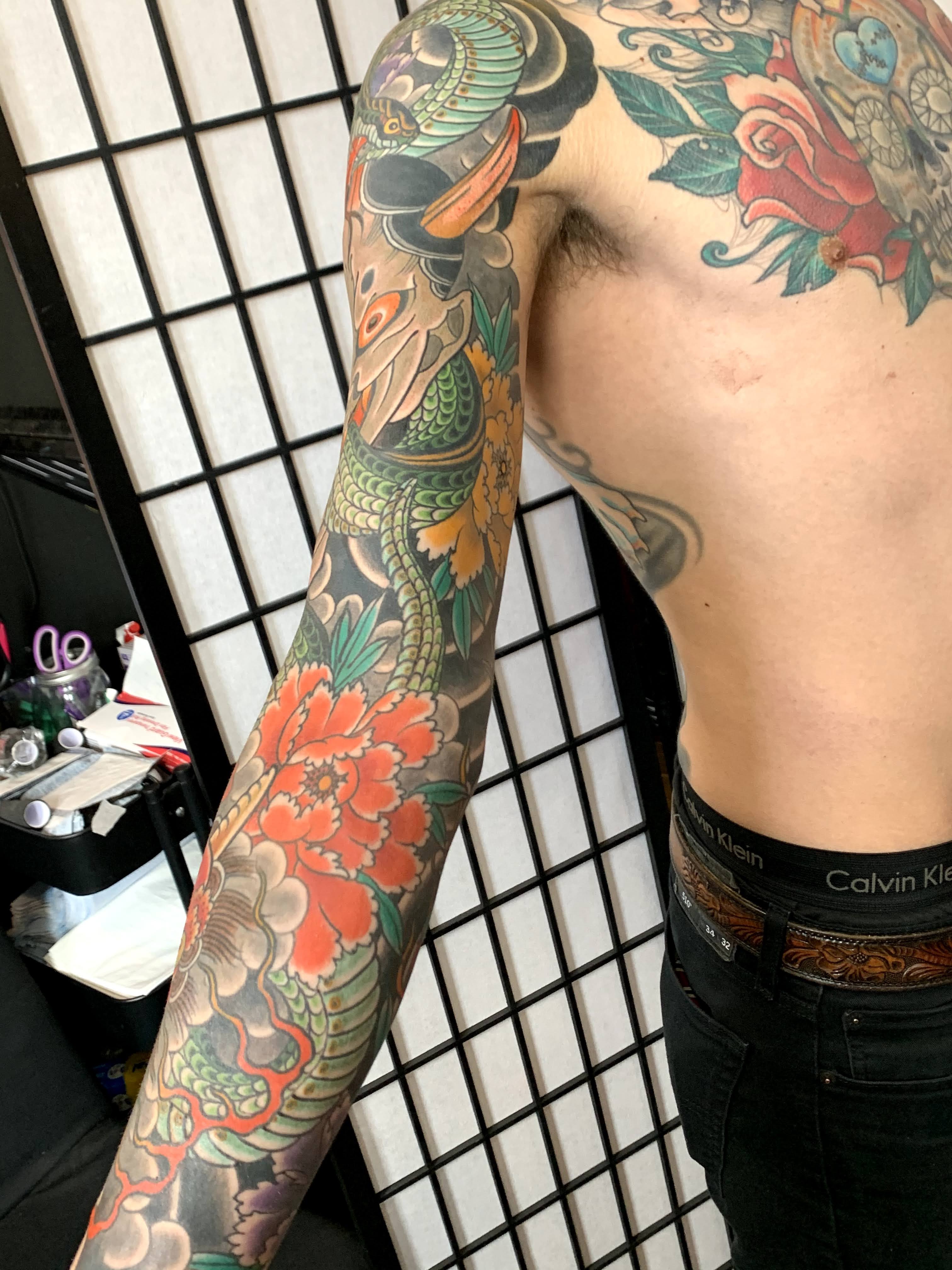 I have been tattooing professionally in Portland, Oregon since 2006. Below is a small selection of completed works over that time. You can find more of my work, including in-progress projects and other media, on my instagram.